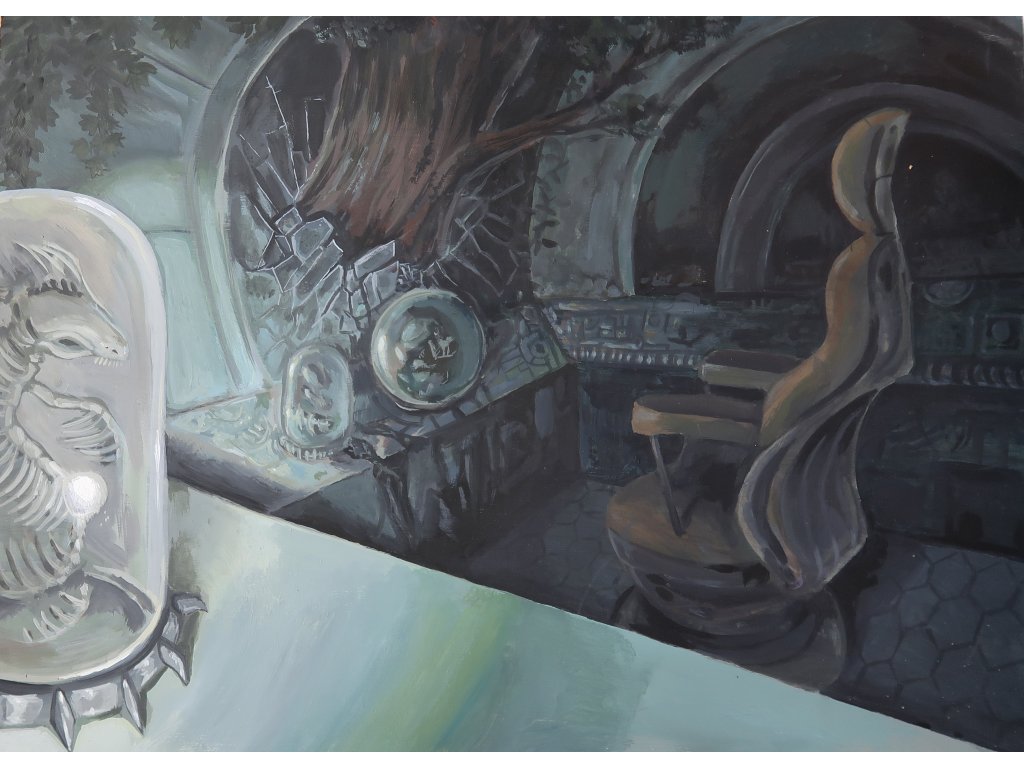 Aneta Žítková: „Sci-fi interiér“ 2. roč., červen 2023, akryl na sololitu, klauzurní práce, vedoucí MgA. Lukáš Vacek, 50x70 cm - SUPŠ Zámeček